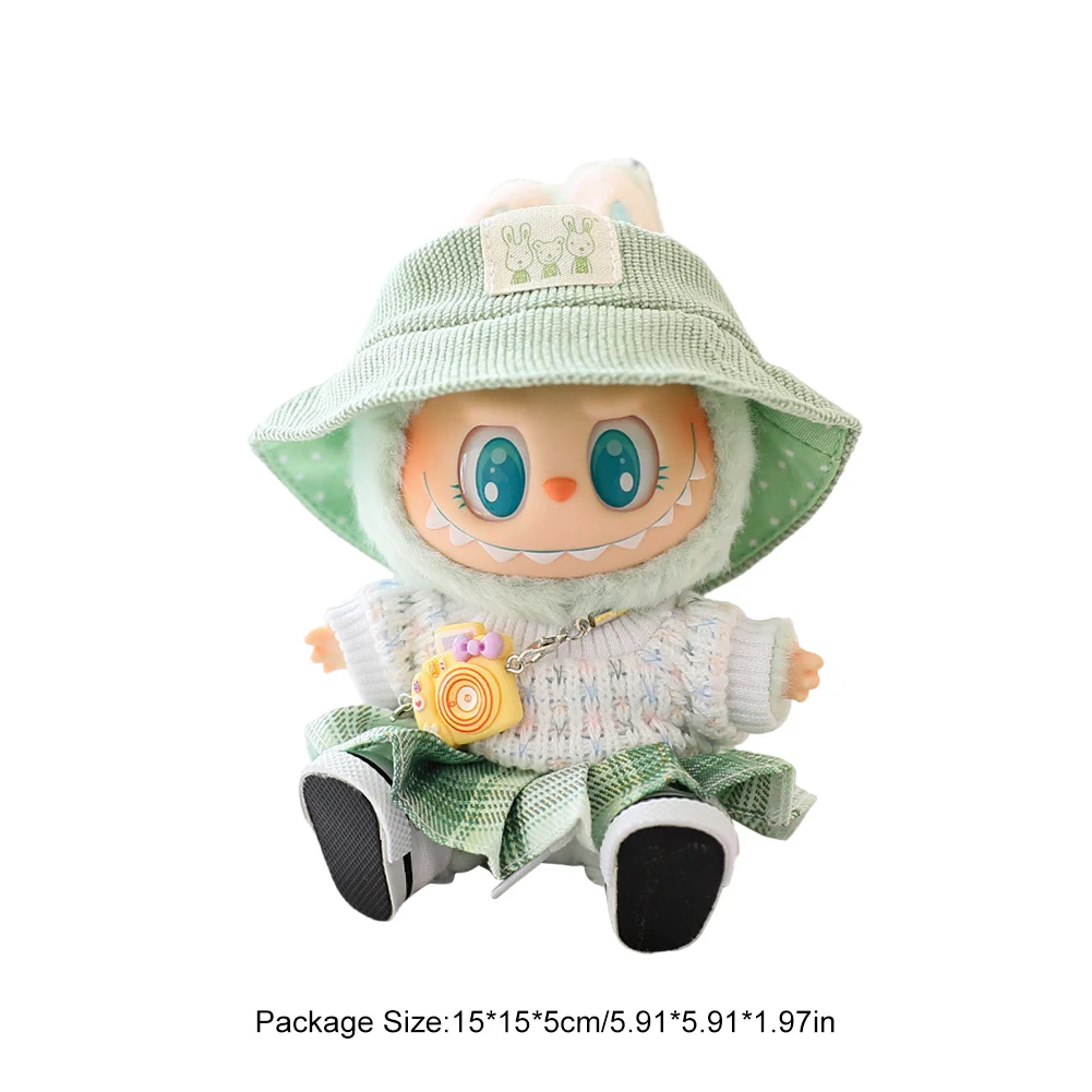 Mini Doll Outfit Cute Plush Sweater with Camera&Shoes Soft Knitted Sweater Suit Kawaii Bear Dress Set for Toy Collector(NO Doll